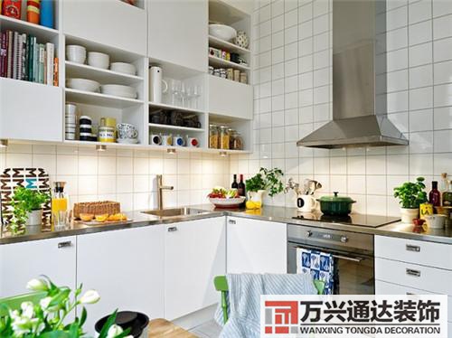 從上面效果圖,我們可以看出整個空間給我們一種很清新自然的感覺,以純白色貫穿廚房配色。墻面的吊柜被設計成大小不一的功能柜,方便放置不同的存放物品,不銹鋼的臺面搭配白色地柜,形成色彩的強烈對比,讓空間裝飾更加突出。綠色植物的點綴,讓空間帶來一種自然的感覺,讓烹飪者心情得到放松。